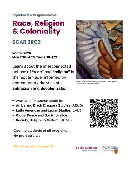 The next deadline to apply to the one-year MA, or two-year MA, or PhD programs at the Department of Religous Studies at McMaster is January 14, 2026.